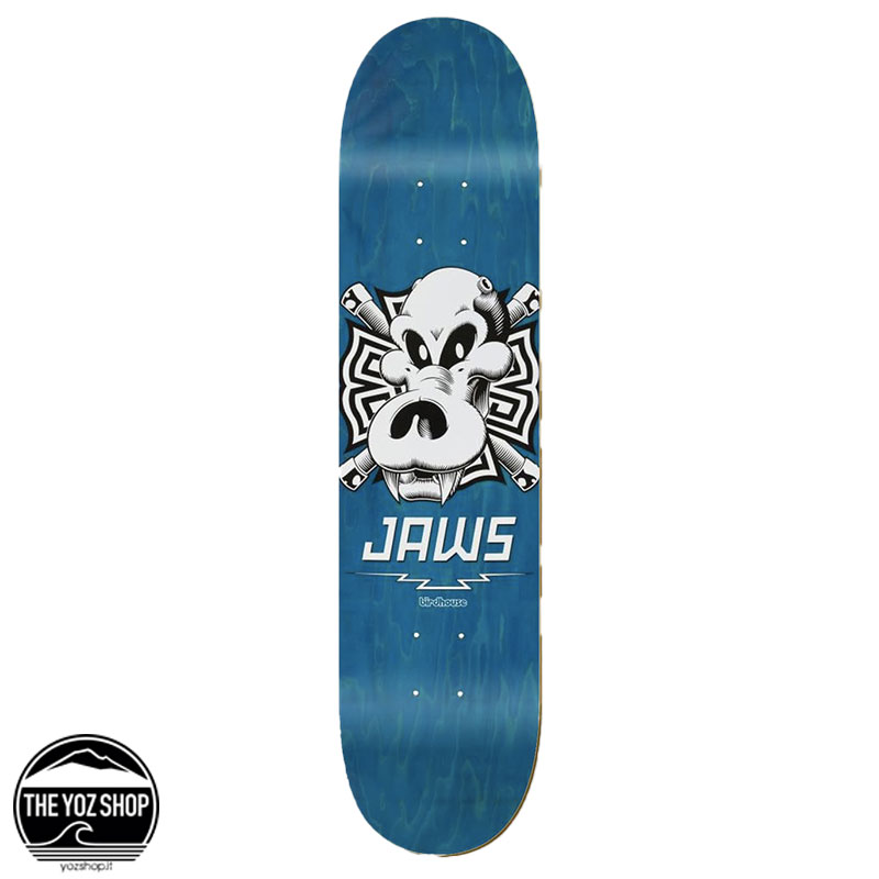 La Jaws Skull è il pro model di Aaron “Jaws” Homoki, famoso per i suoi drop estremi e il riding spettacolare. Realizzata da Birdhouse Skateboards, lo storico brand fondato da Tony Hawk nei primi anni ’90, questa tavola combina robustezza, stabilità e una grafica iconica, ideale per chi vuole spingersi oltre i propri limiti sullo skate.