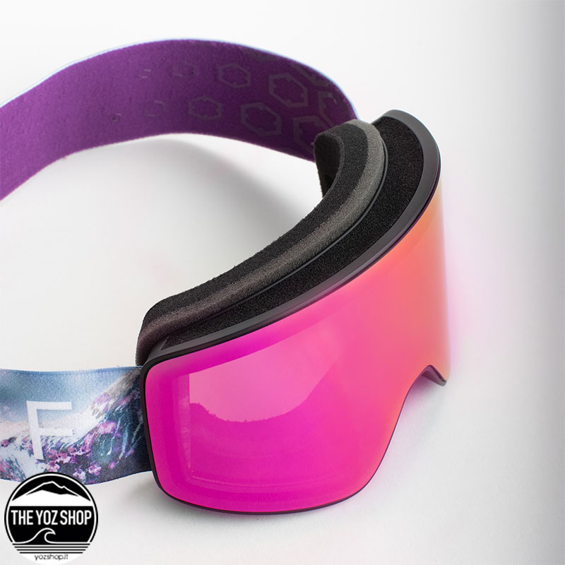 La maschera da snowboard e sci Void Lilac di Out Of si distingue per la sua particolare forma avvolgente che favorisce un maggiore campo visivo sui lati consentendo di vedere i movimenti degli altri sciatori.