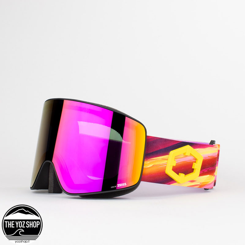 La maschera da snowboard e sci Void Revolve di Out Of si distingue per la sua particolare forma avvolgente che favorisce un maggiore campo visivo sui lati consentendo di vedere i movimenti degli altri sciatori.